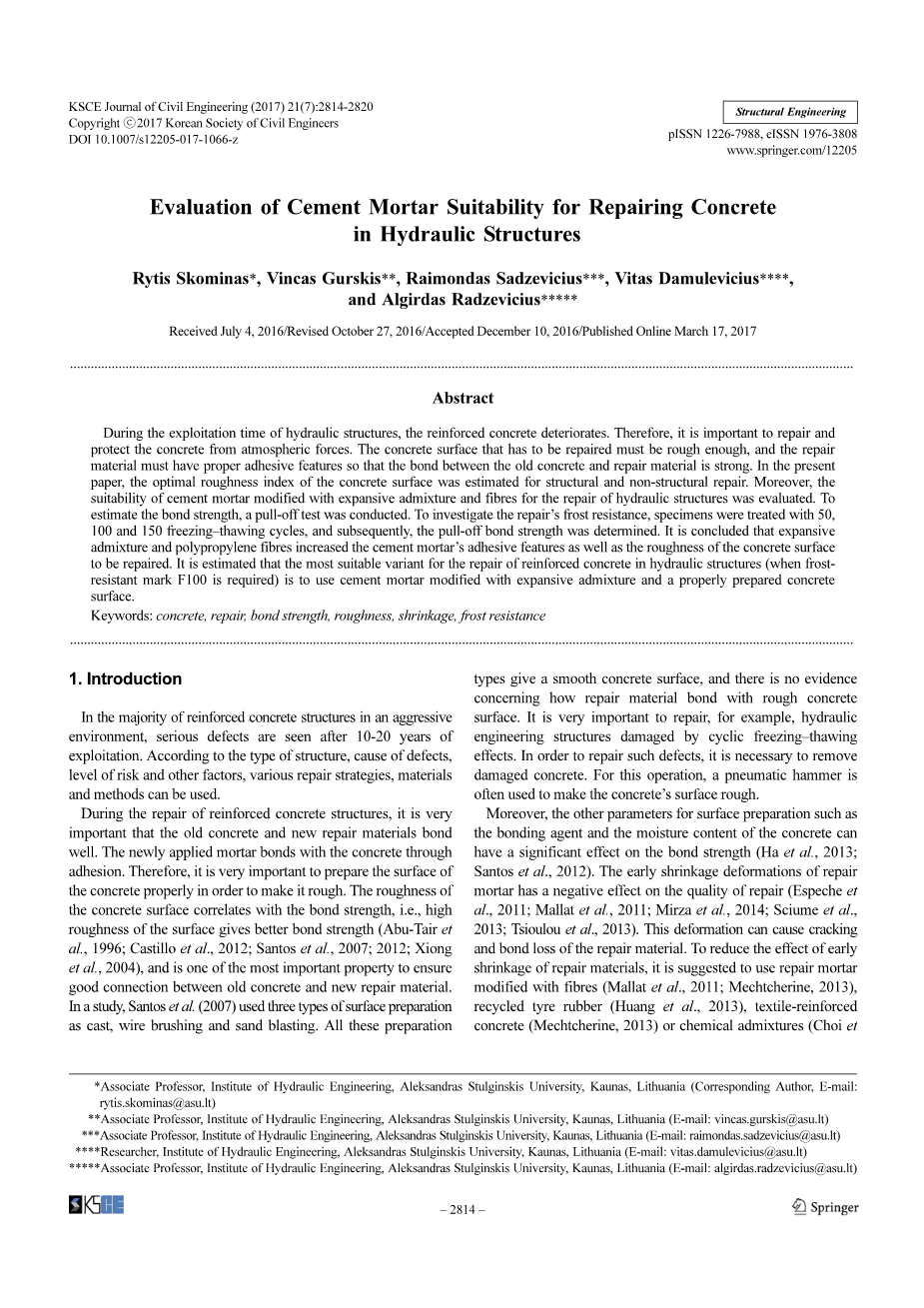 本研究的目的是估计结构和非结构修复混凝土表面的最佳粗糙度指数(RI),并估计膨胀砂浆和纤维改性水泥砂浆对水工建筑物修复的适用性。