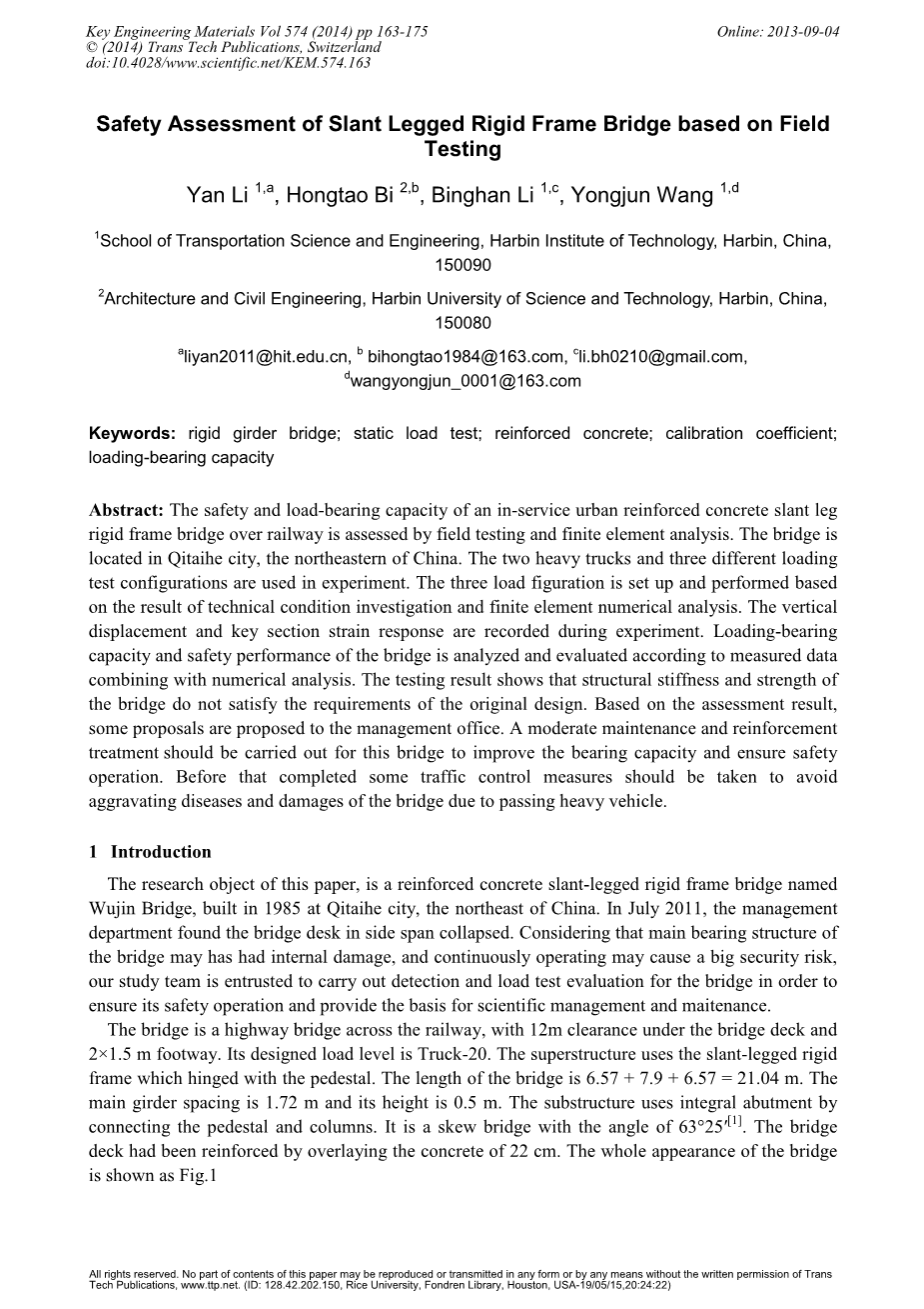 基于现场实验的斜拉索刚构桥安全性评估外文翻译资料