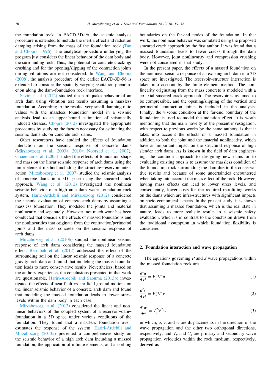Mirzabozorg 等. (2012) 考虑了水库大坝 基础在三维空间中的耦合系统在基础各种条件下的线性和非线性行为。他们发现,一个无质量的基础高估了系统的反应。Hariri-Ardebili 和 Mirzabozorg (2013a) 对高拱坝的抗震性能进行了综合研究,包括集中基础、无限单元的应用和合并基础远端节点上的边界。