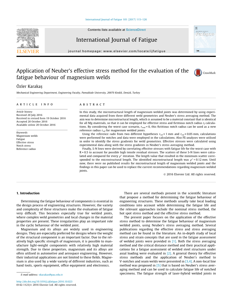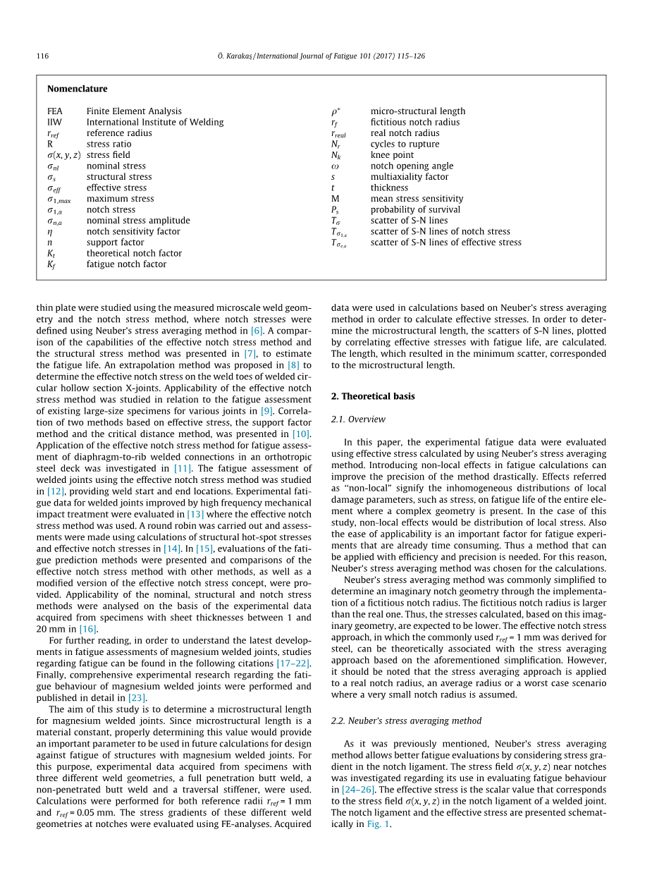为了在接下来的阅读中能够理解在镁焊接构件的疲劳评估中最新进展,我们可以在以下的引文当中看到这方面的研究,最后通过对镁焊接结构的广泛实验数据研究发表了大量更详尽的文章。