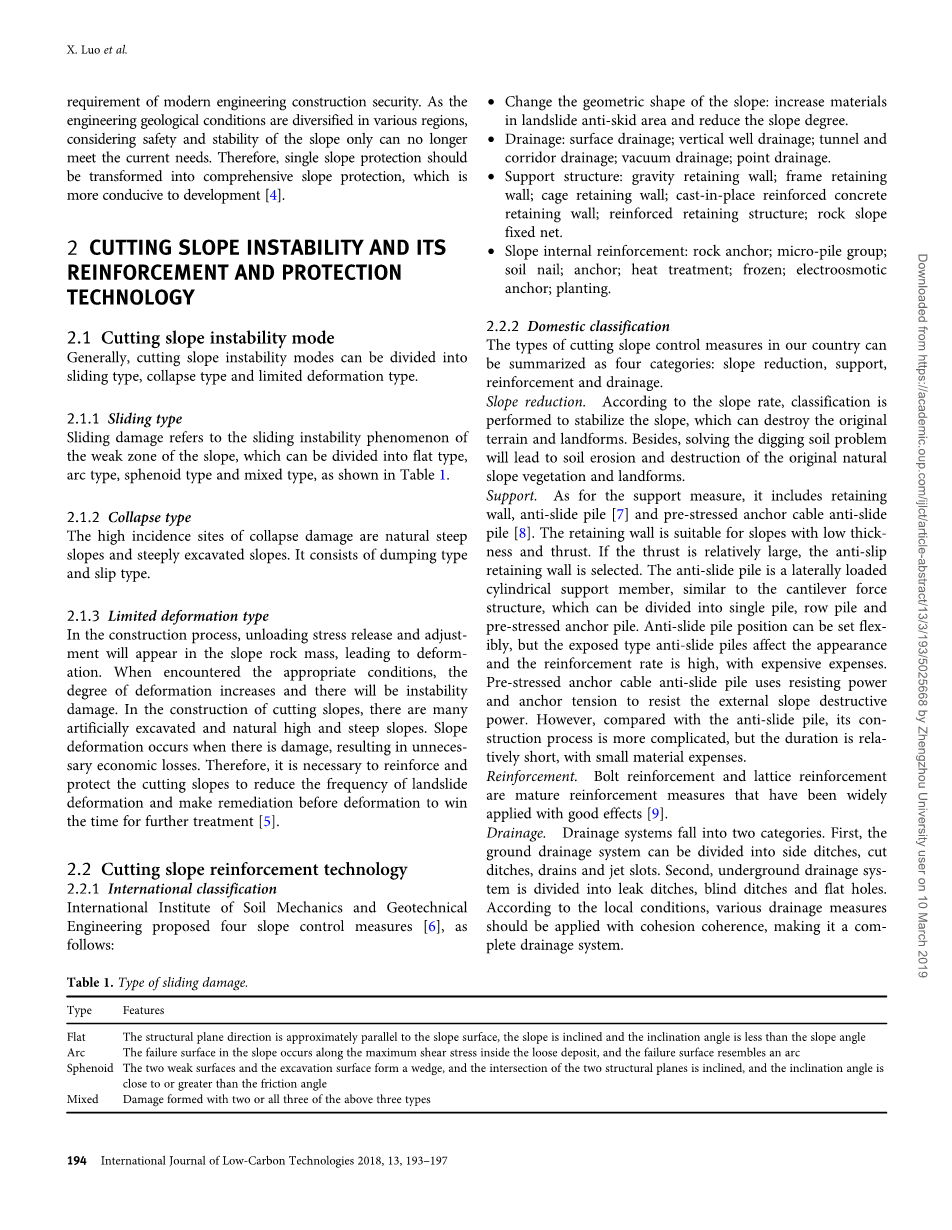 2.2.1国际分类:国际土力学和岩土工程机构提出四种坡体的控制措施,如下: