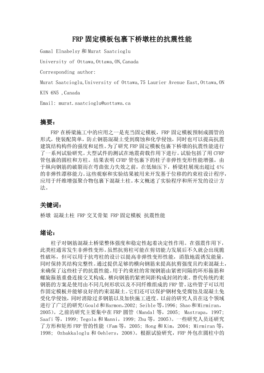 FRP/钢复合管约束钢筋混凝土圆柱抗震性能研究外文翻译资料 2022-03-12 15:24:37 英语原文共 11 页,剩余内容已隐藏,支付完成后下载完整资料 英语原文共 10 页,剩余内容已隐藏,支付完成后下载完整资料资料编号:[16517],资料为PDF文档或Word文档,PDF文档可免费转换为Word 原文和译文剩余内容已隐藏,您需要先支付 30元 才能查看原文和译文全部内容!立即支付 发小红书推广免费获取该资料资格。点击链接进入获取推广文案即可: Ai一键组稿 | 降AI率 | 降重复率 | 论文一键排版 PREVIOUS NEXT 您可能感兴趣的文章 海上风电机组桩基础周围孔隙压力的累积与土壤软化外文翻译资料 关于风力发电机的基础解决方案的三维数值模拟外文翻译资料 海上风机单桩基础的船舶碰撞分析外文翻译资料 印度古吉拉特邦海上风力涡轮机单体桩基础的简化设计程序外文翻译资料 钻孔灌注桩和钢桩支撑的基坑性能:实例研究外文翻译资料 基于缺口应力强度因子和SED方法的焊接接头疲劳强度研究综述外文翻译资料 自然边界元法分析V形切口的热应力奇异性外文翻译资料 通过自适应充气结构保护海上风力涡轮机 免受船舶撞击外文翻译资料 隔水管和井口应力和疲劳的测定方法外文翻译资料 基础退化的海洋导管架平台在循环荷载作用下的动力响应外文翻译资料