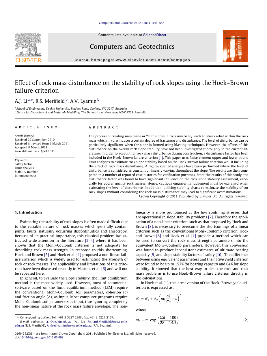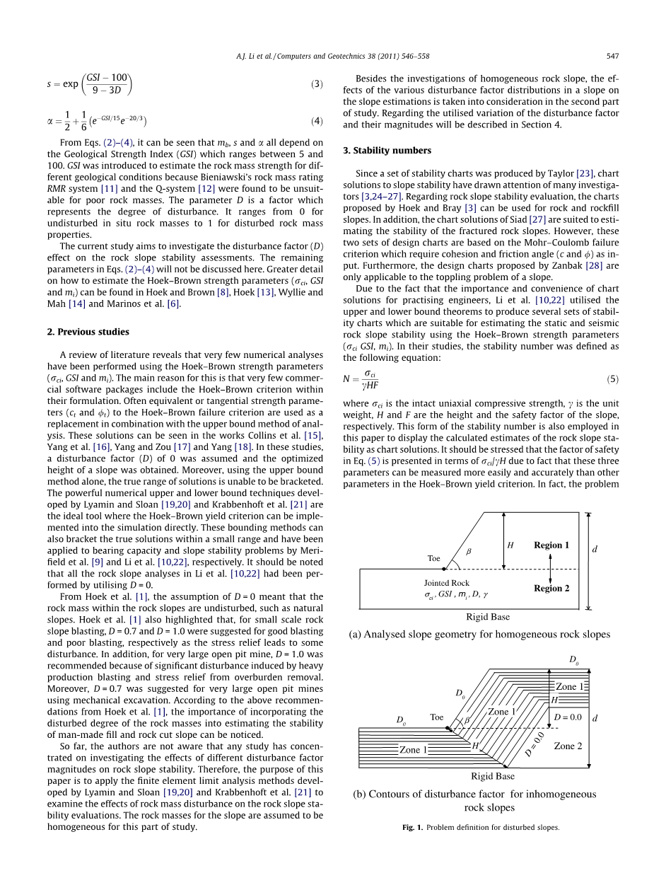 岩体的扰动对岩石边坡采用霍克–布朗破坏准则的稳定性的影响