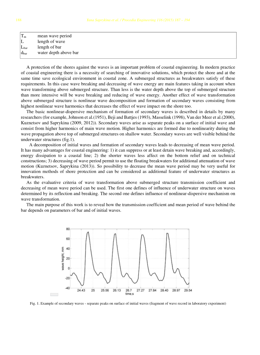 Kuznetsov S. and SaprykinaY., 2012. Secondary waves in coastal zone: physical mechanisms of formation and possible application for coastal protection. Proceeding of 33th International Conference on Coastal Engineering, ed. by J.McKee Smith, World Scientific.