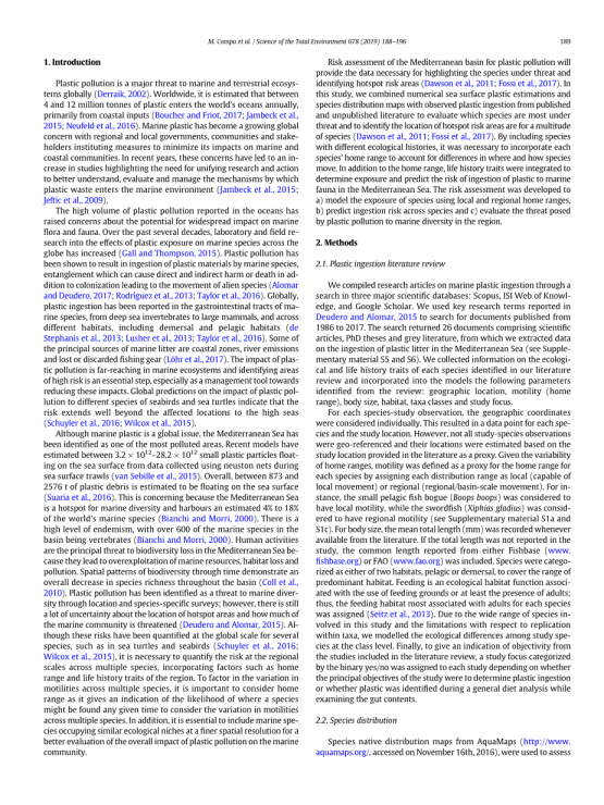 通过对Scopus、ISI知识网和谷歌Scholar三大科学数据库的检索,我们编辑了关于海洋塑料摄入的研究文章。我们使用Deudero和Alomar, 2015年报道的关键研究术语来搜索1986年至2017年发表的文献。搜索返回了26个文件,包括科学论文、博士论文和灰色文献,从中我们提取了地中海塑料垃圾摄入的数据。我们收集了在我们的文献综述中发现的每个物种的生态和生活史特征的信息,并将从综述中确定的以下参数纳入到模型中:地理位置、运动性(家的范围)、体型、栖息地、类群和研究重点。