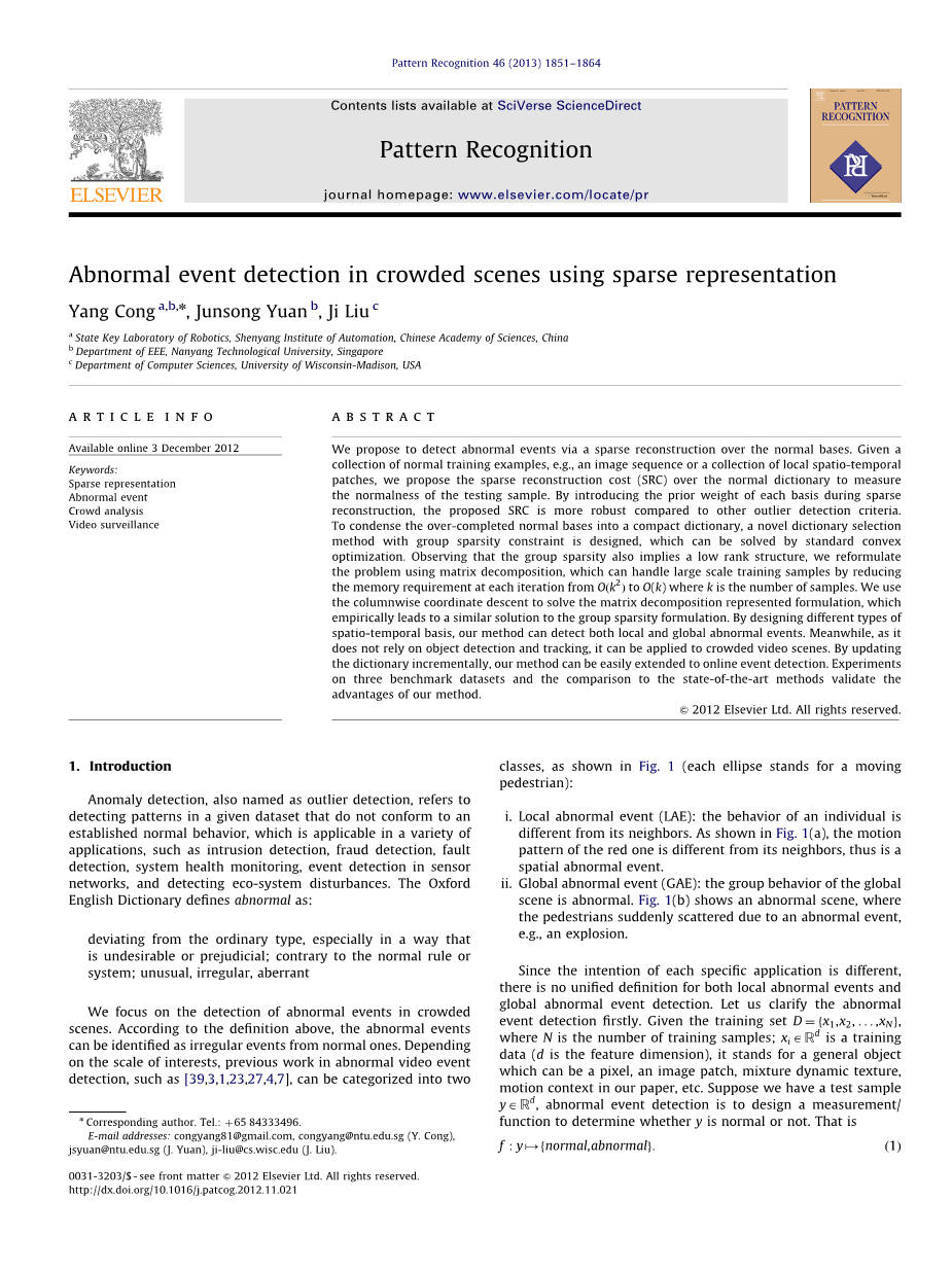 关键词:稀疏表示、异常事件、人群分析、视频监控
