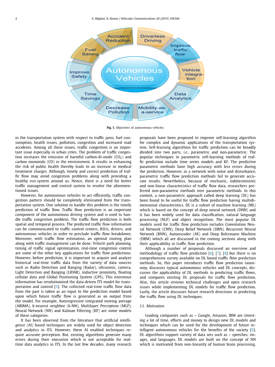 自动驾驶汽车交通流量预测的深度学习模型: 回顾,解决方案和挑战外文翻译资料