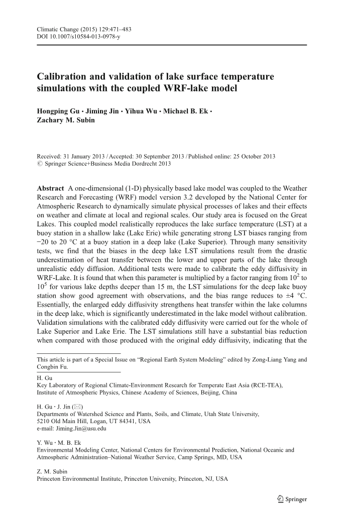 Hongping Gu amp; Jiming Jin amp; Yihua Wu amp; Michael B. Ek amp;Zachary M. Subin