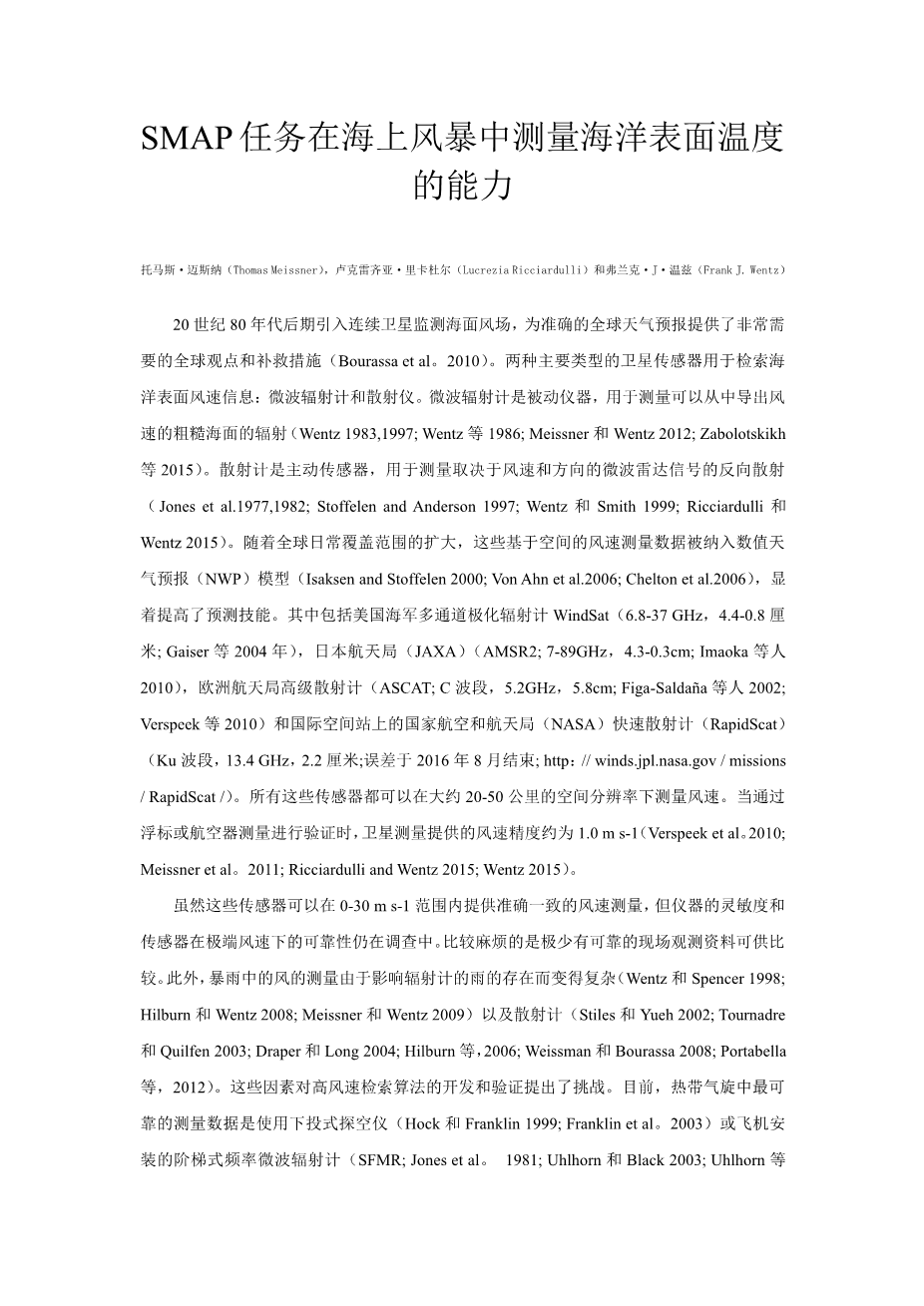 SMAP任务在海上风暴中测量海洋表面温度 的能力外文翻译资料 2023-02-23 15:30:04 英语原文共 19 页,剩余内容已隐藏,支付完成后下载完整资料 英语译文共 24 页,剩余内容已隐藏,支付完成后下载完整资料 资料编号:[23446],资料为PDF文档或Word文档,PDF文档可免费转换为Word 原文和译文剩余内容已隐藏,您需要先支付 30元 才能查看原文和译文全部内容!立即支付 发小红书推广免费获取该资料资格。点击链接进入获取推广文案即可: Ai一键组稿 | 降AI率 | 降重复率 | 论文一键排版 PREVIOUS NEXT 您可能感兴趣的文章 基于合成孔径雷达的溢油污染遥感外文翻译资料 调和潮汐预报与一维水力模型相结合的斯凯尔特海潮汐预报外文翻译资料 基于神经网络的高频雷达风速反演外文翻译资料 基于卫星观测的海气耦合作用下海洋流场对风应力影响研究外文翻译资料 东中国海过去40年海水表面温度的长期变化外文翻译资料 四种全球潜热通量数据产品的比较外文翻译资料 利用垂直矢量传感器阵列进行地声匹配场反演外文翻译资料 SMAP任务在海上风暴中测量海洋表面温度 的能力外文翻译资料 中纬度海洋锋区的平均状态和主导变化对对流层环流的重要作用外文翻译资料 西半球热带风暴起源地的南北变化外文翻译资料