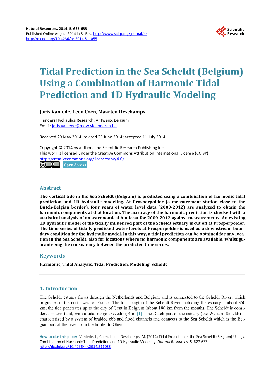 河口沿线位置的潮汐预报对于总体规划目的,特别是对于航海可达性而言是非常重要的。弗利辛恩、普洛斯彼德、安特卫普和温塔姆的潮汐预报每年以潮汐表的形式发表,其中包括预测高低水位的时间和高度。弗利辛恩和普洛斯彼德的潮汐预报也发表在“海军部潮汐表”(ATT)上,并分别列在弗利辛恩(弗卢辛)和安特卫普(普洛斯彼德)两地。我们的研究目标是建立一种方法论,以获得在斯凯尔特海中任何地点的潮汐预报,也包括在没有谐波成分的地点,同时保证预测时间序列之间的一致性。