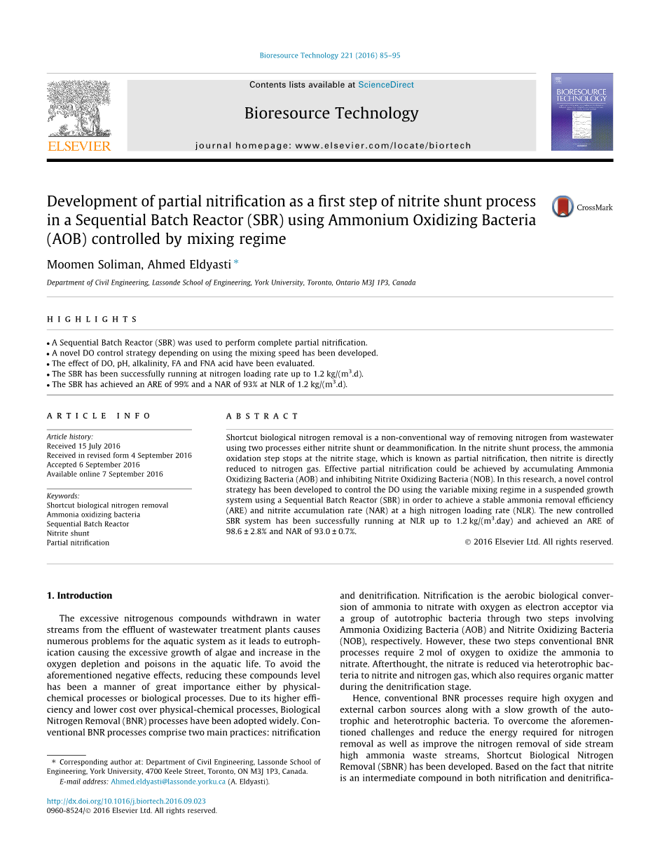 M. Soliman, A. Eldyasti / Bioresource Technology 221 (2016) 85–95 |
