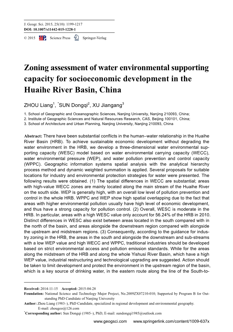 关键词:淮河流域;社会经济发展;承载力;3D模型;水环境