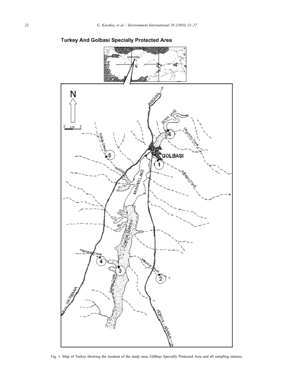 挑选了6个取样点:其中5个位于汇入莫干湖的支流(1:苏克申湖;2:巴斯帕纳尔湖;3:洛瓦湖;4:亚瓦拉克湖;5:克鲁克湖);第六站(伊米尔湖和莫干湖连接;据报道,莫干运河是污染最严重的地区(aski1995)。图1描述了取样站的位置。
