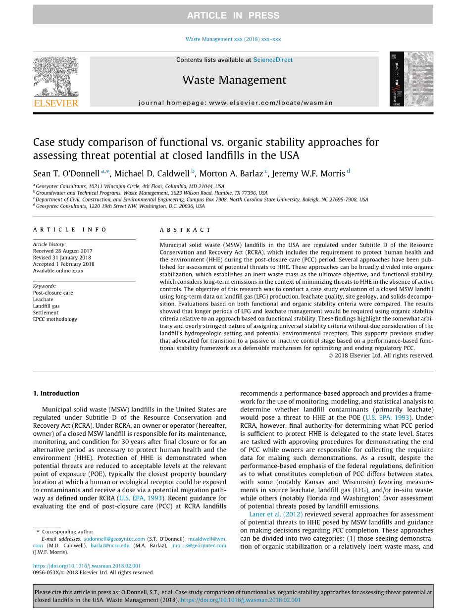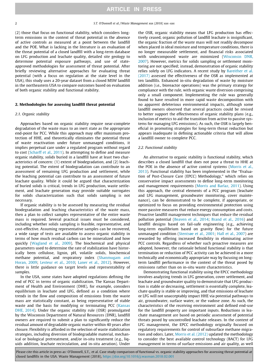 评估美国封闭垃圾填埋场潜在威胁的功能性与有机稳定性方法的案例研究比较