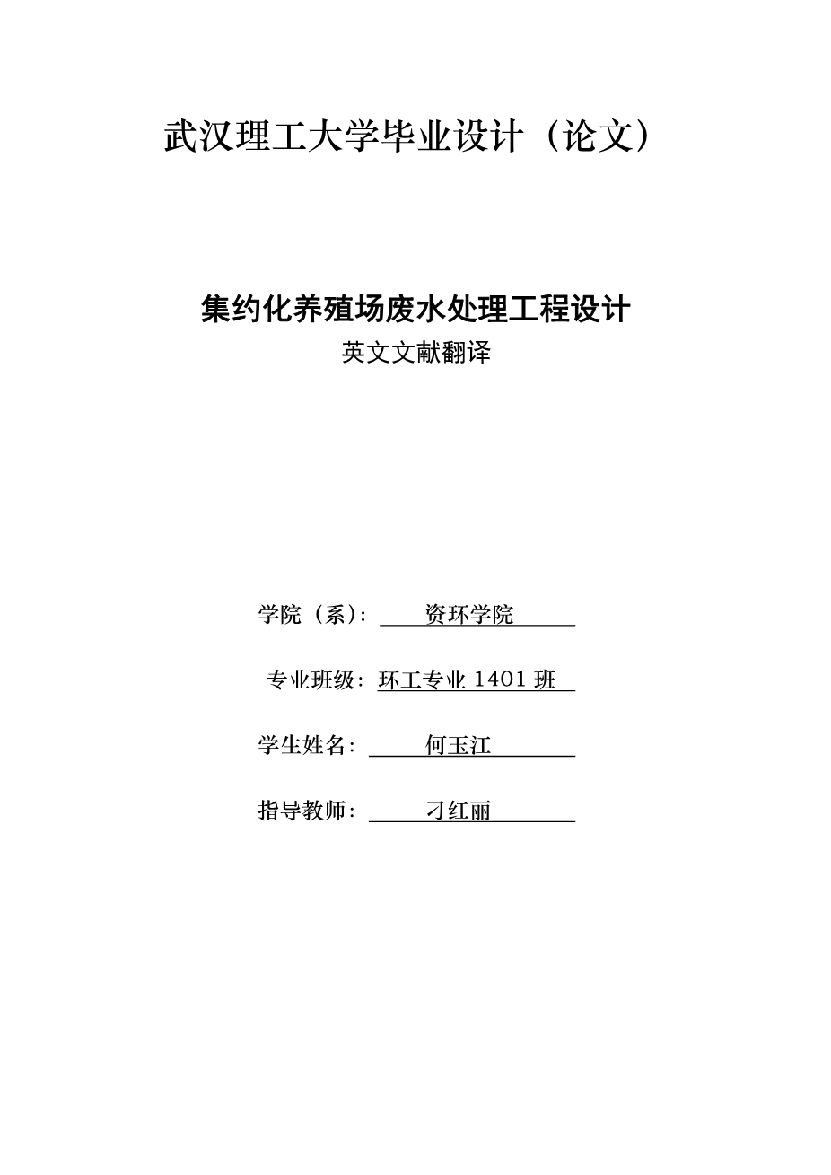 集约化养殖场废水处理工程设计外文翻译资料