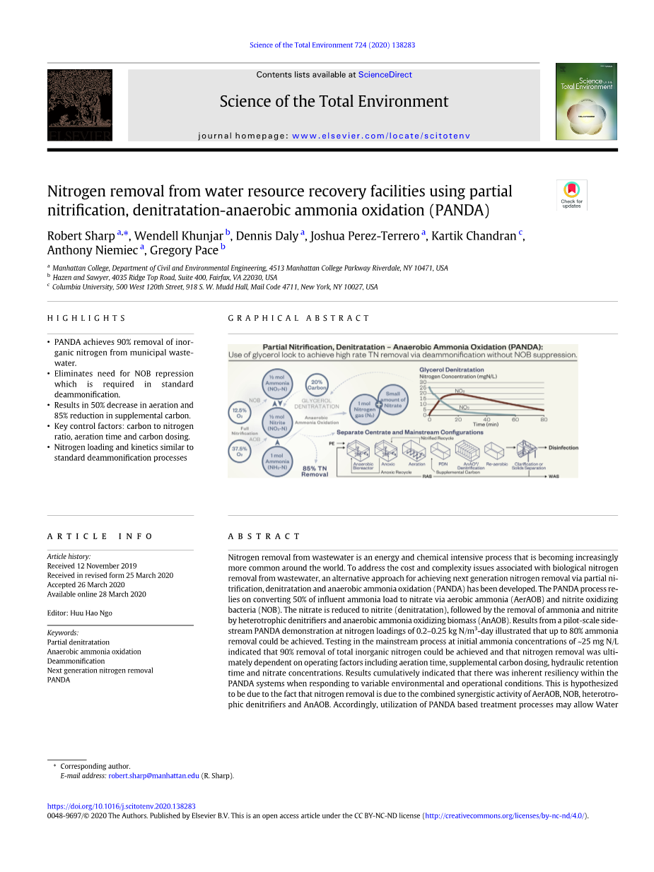 关键词:部分脱硝 厌氧氨氧化 脱氨 PANDA