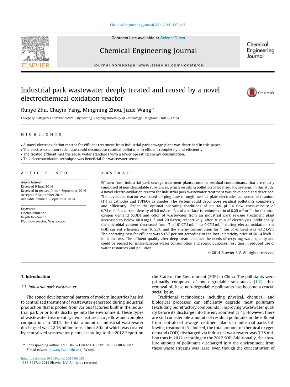 [2] Wang, J.D., Yan, J.J., Xu, W.J. (2015) Treatment of dyeing wastewater by MIC anaerobic reactor. Biochemical Engineering Journal., 101: 179-184.