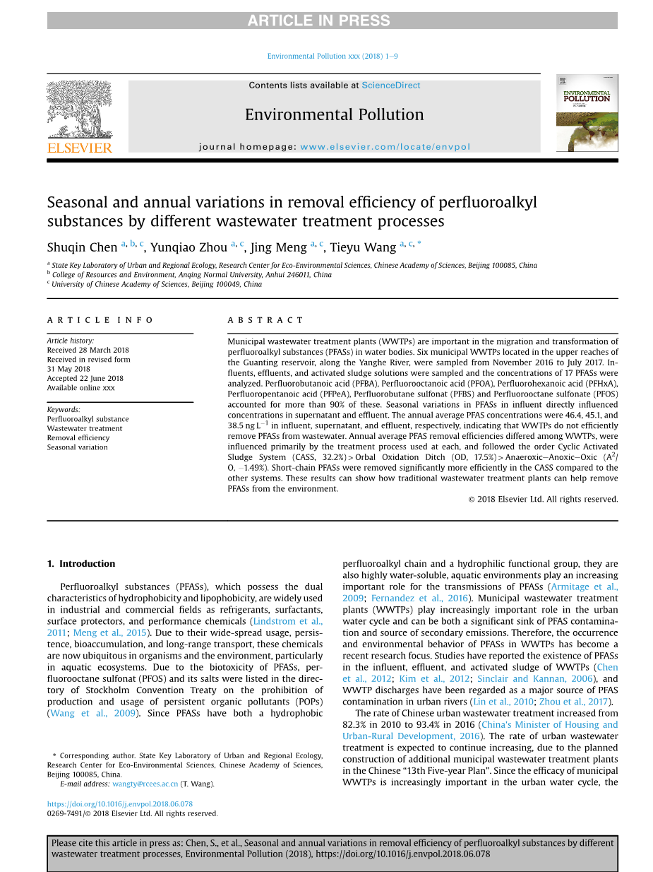 关键词:全氟烃基物质;废水处理;去除效率;季节性变化