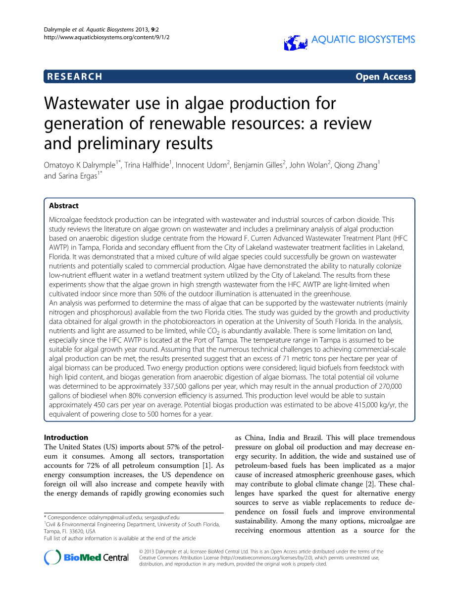 Omatoyo K Dalrymple1*, Trina Halfhide1 , Innocent Udom2 , Benjamin Gilles2 , John Wolan2 , Qiong Zhang1 and Sarina Ergas1*