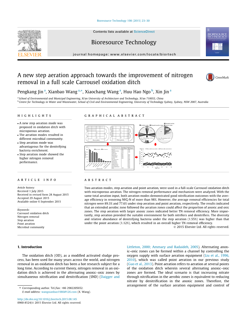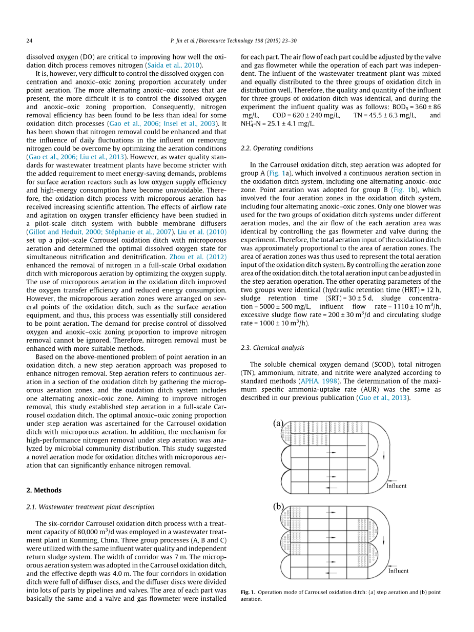 一种新的改善氧化沟中氮去除的步骤曝气法外文翻译资料