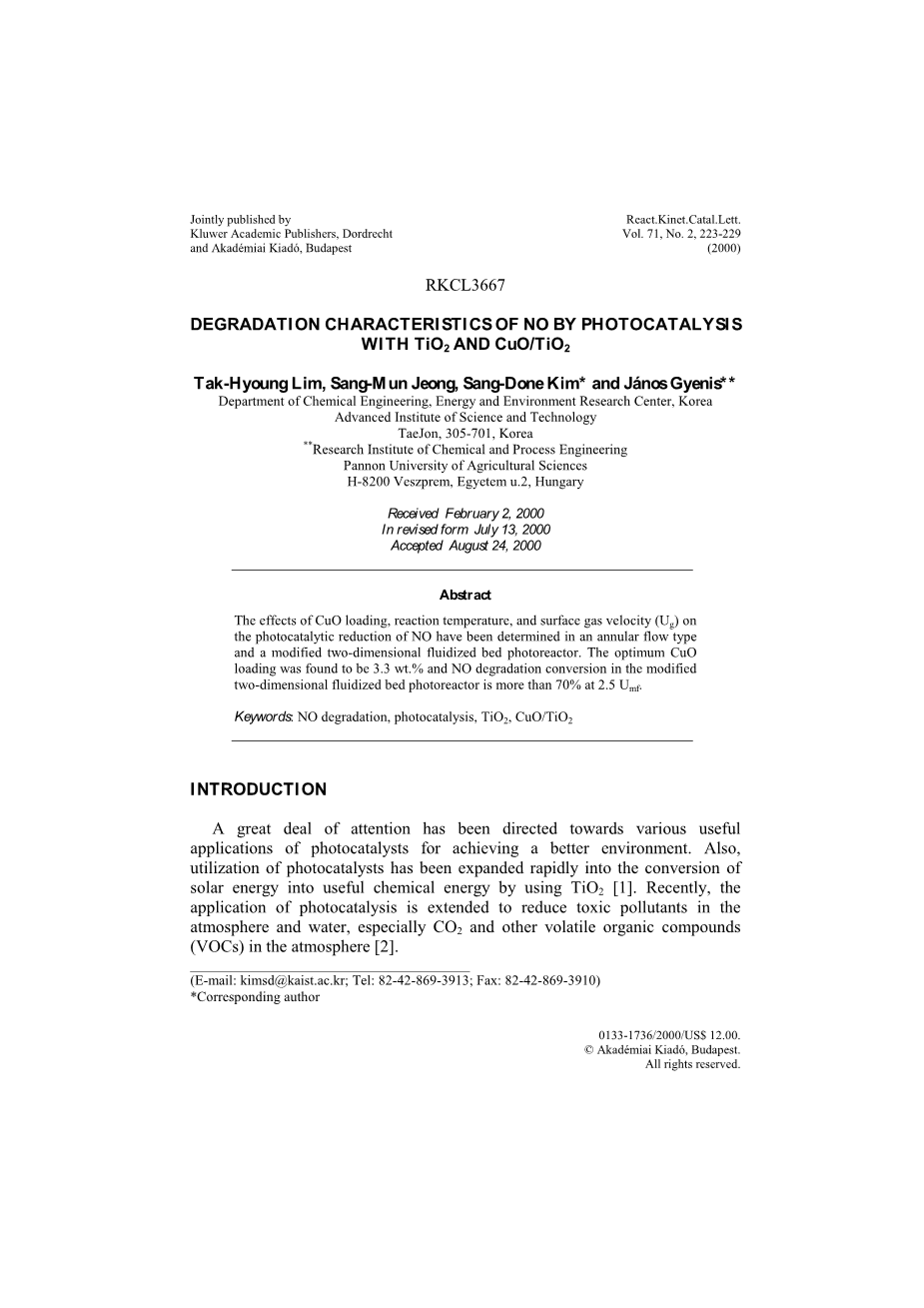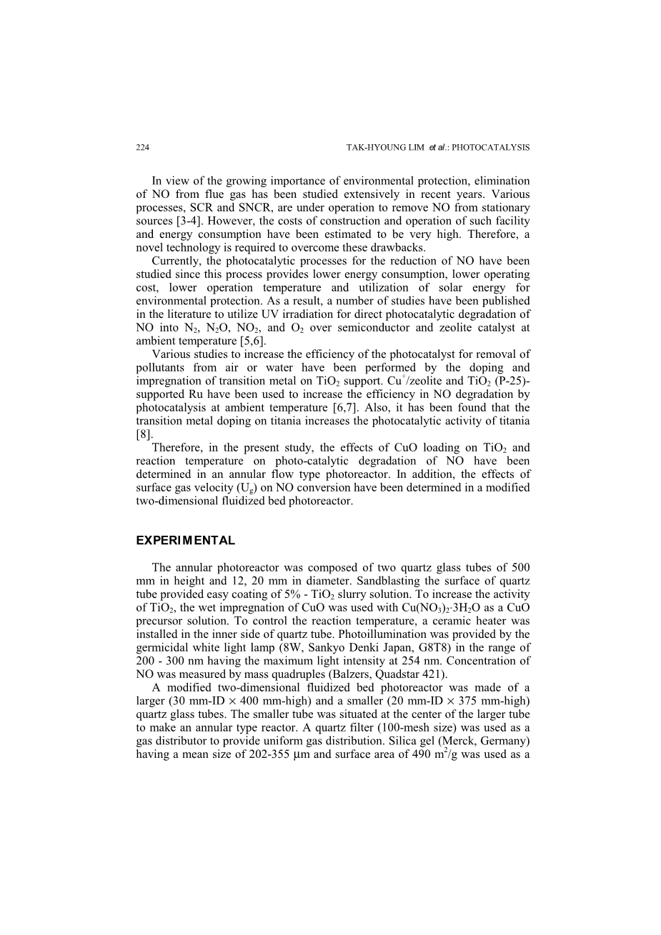 - T.H. Lim, S.M. Jeong, S.D. Kim, J. Gyenis: J. Photochem. Photobiol. A: Chemistry, 134, 209 (2000).