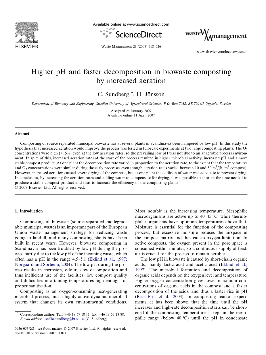 原文作者 C. Sundberg *, H. Jouml;nsson