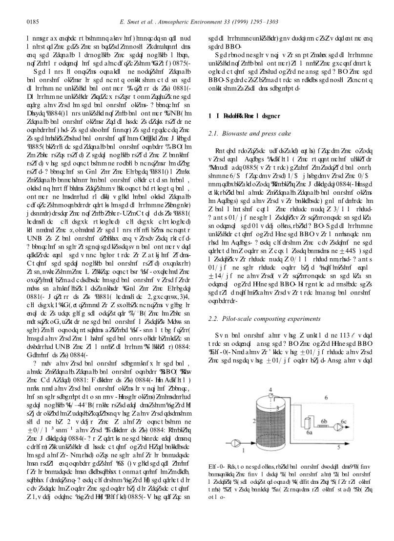 一种新的有机垃圾堆肥技术是结合厌氧/好氧堆肥过程(CCP)(六和1992;gellens贝耳,et al.,1995)。在比利时,只有一个有机垃圾堆肥厂工作根据这项技术到现在为止。在这家工厂,一个密集的高温(50-55°C)固态发酵(第一期)发生在一个立式反应器厌氧停留时间约3周和沼气生产100美元立方米吨~ 1废弃物(gellens et al.,1995;辛克莱和当时情景,1995)。由于封闭式发酵罐的设计,所有的挥发物在第一阶段是收集沼气池。在现场,这沼气的一部分转化为蒸汽加热过程(7%),而剩余的气体被转换成电后,在燃烧的发电厂。后消化(第一期),残留在机脱水滤饼是加气两周期间(阶段II)(楣板,1996)。关于挥发物的排放量,但是,没有数据发现这些共产党。这项工作的范围是量化的挥发性有机化合物的排放量,两者的ACP和共产党活动期氨和硫化氢。这些数据用于选择最佳的气味污染治理技术。