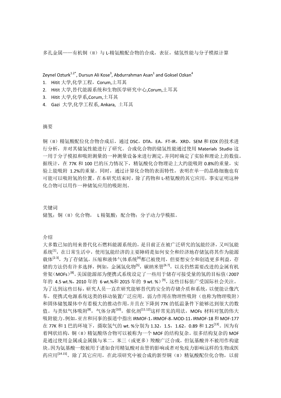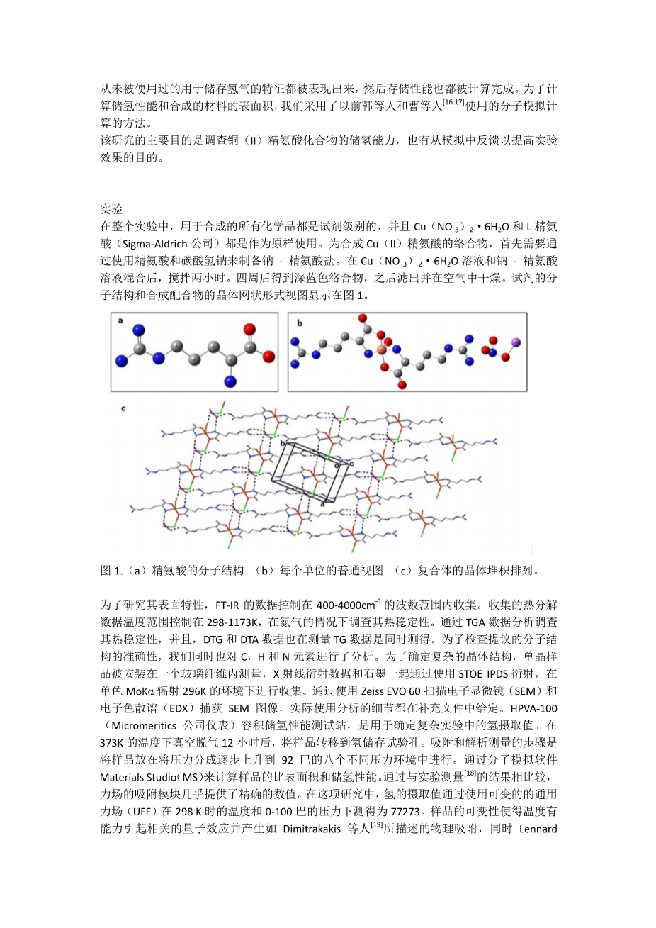 多孔金属—-有机铜(II)与L-精氨酸配合物的合成,表征,储氢性能与分子模拟计算外文翻译资料