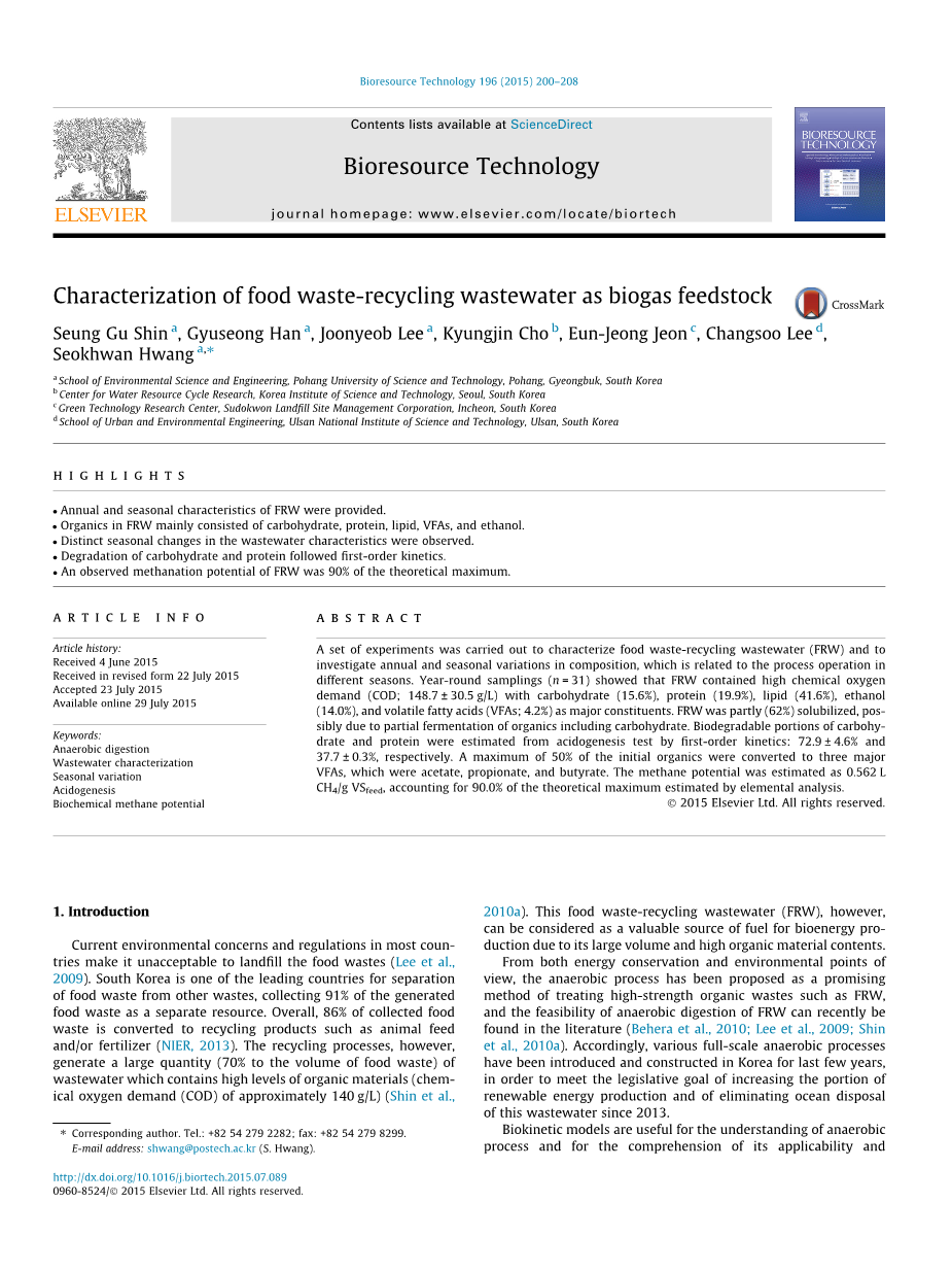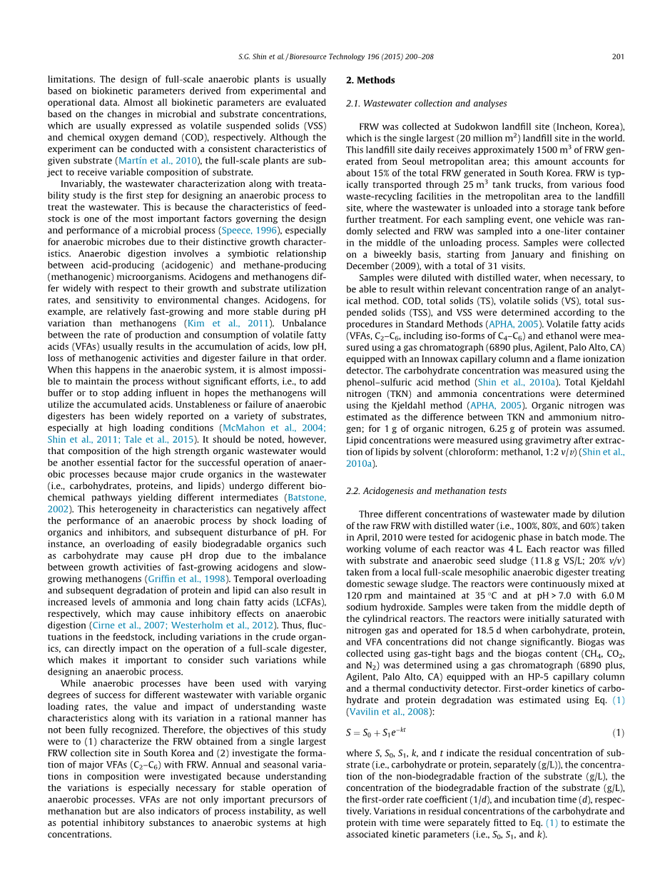 从节能和环保的角度来看,厌氧工艺被认为是处理高强度有机废物(如FRW)的一种很有前途的方法,FRW厌氧消化的可行性最近可以在文献中找到(Behera等,2010年;Lee等,2009年;Shin等,2010a)。因此,韩国在过去几年中引入并建造了各种全规模厌氧工艺,以实现增加可再生能源生产比例的立法目标,并从2013年起不再使用海洋处理方法处理此类废水。