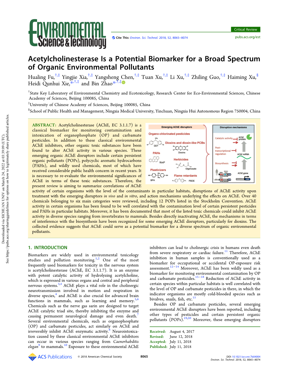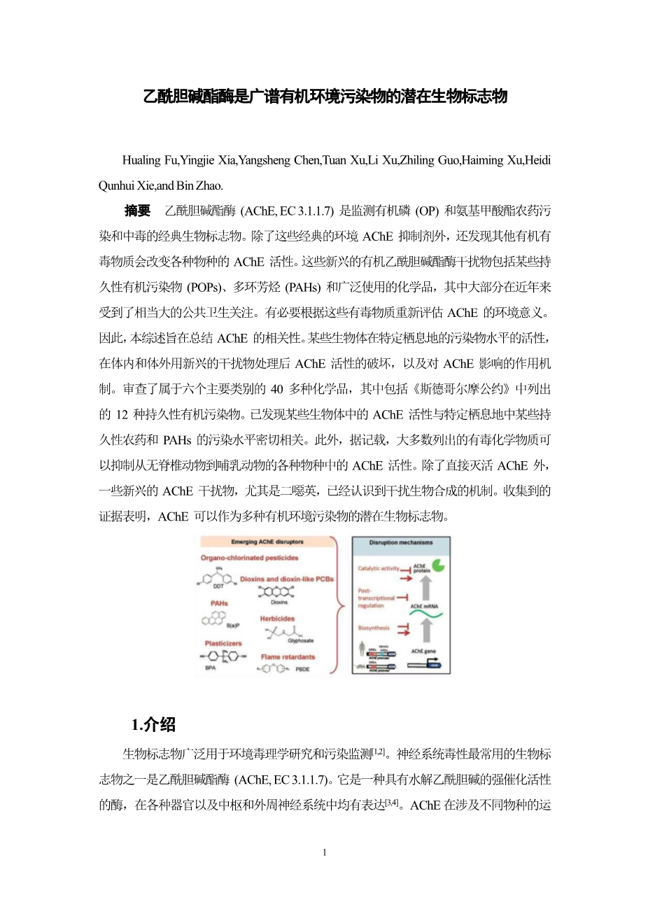 - 乙酰胆碱酯酶是广谱有机环境污染物的潜在生物标志物外文翻译资料