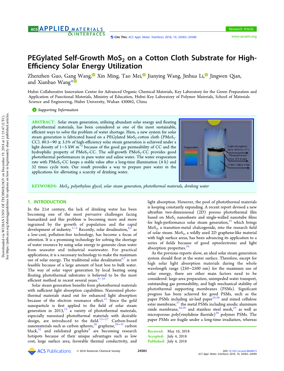 关键词:二硫化钼聚乙二醇,太阳能发电,光热材料,饮用水