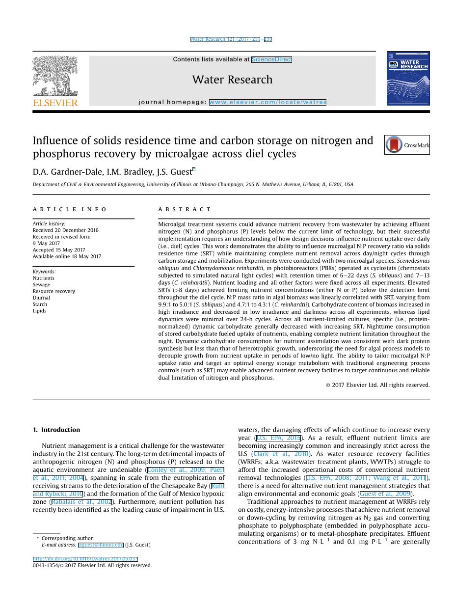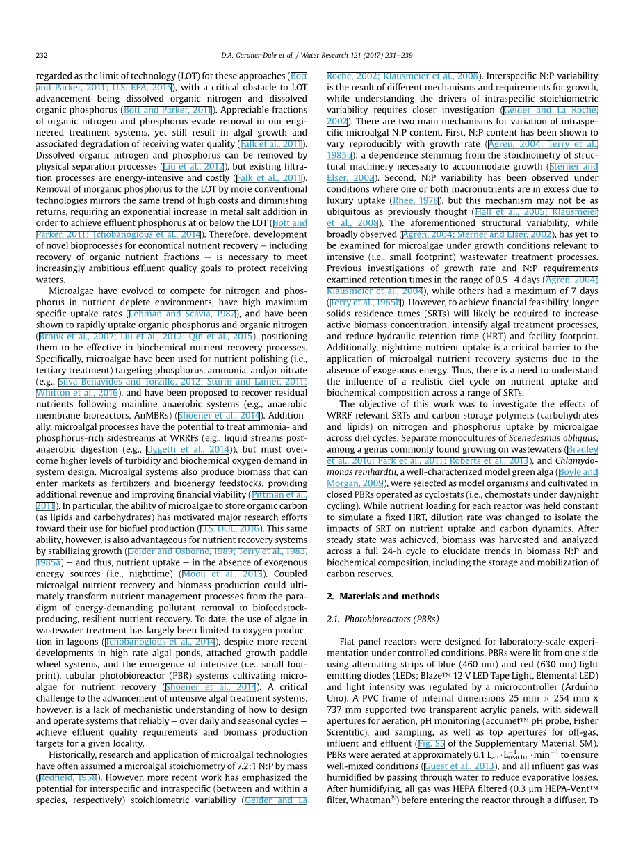 固体停留时间和碳储存对微藻通过Diel循环回收氮磷的影响外文翻译资料