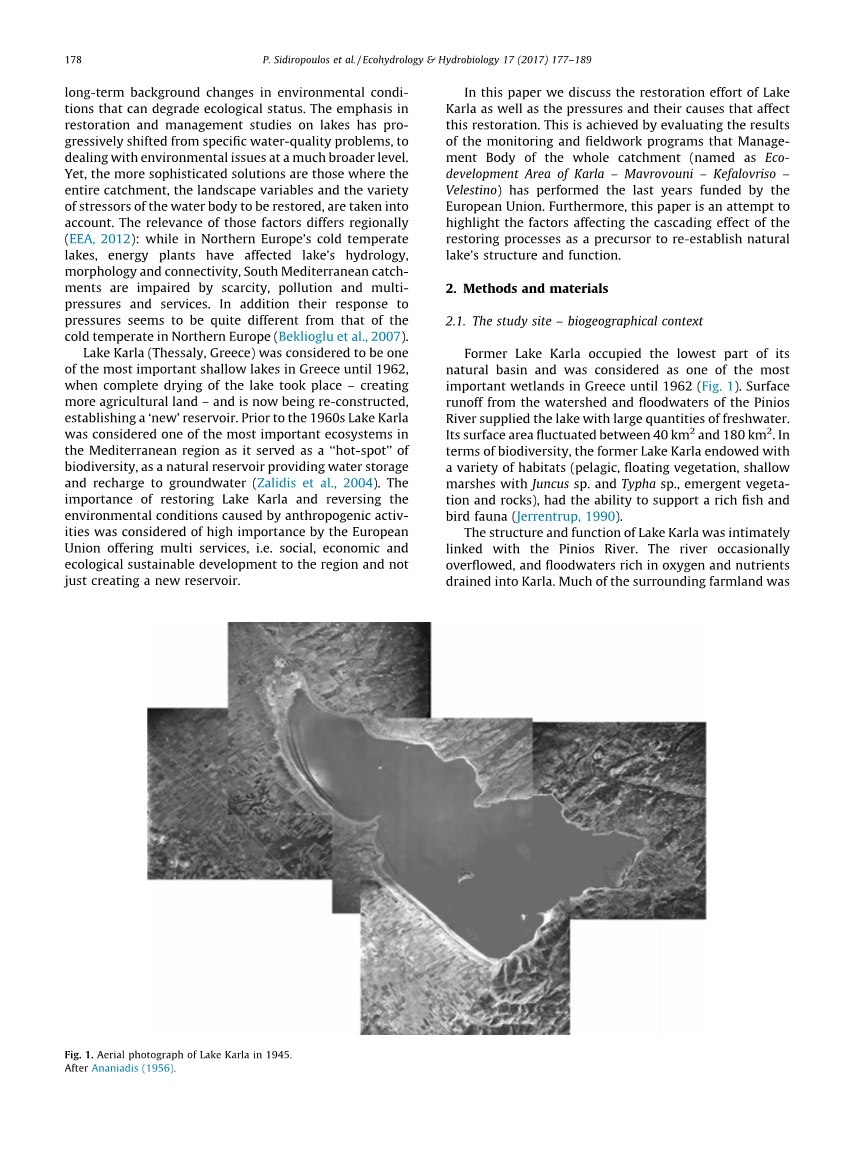前卡拉湖占据了其自然盆地的最低部分,直到1962年都被认为是希腊最重要的湿地之一(图1)。它的表面积在40到180平方公里之间波动。在生物多样性方面,前卡拉湖具有多种生境(远洋、漂浮植被、浅沼泽、突现植被和岩石),能够支持丰富的鱼类和鸟类动物群生存(Jerrentrup, 1990)。