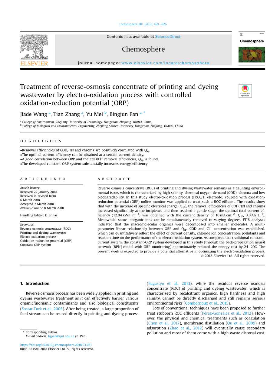 采用控制氧化还原电位的电氧化工艺处理印染废水反渗透浓缩物外文翻译资料