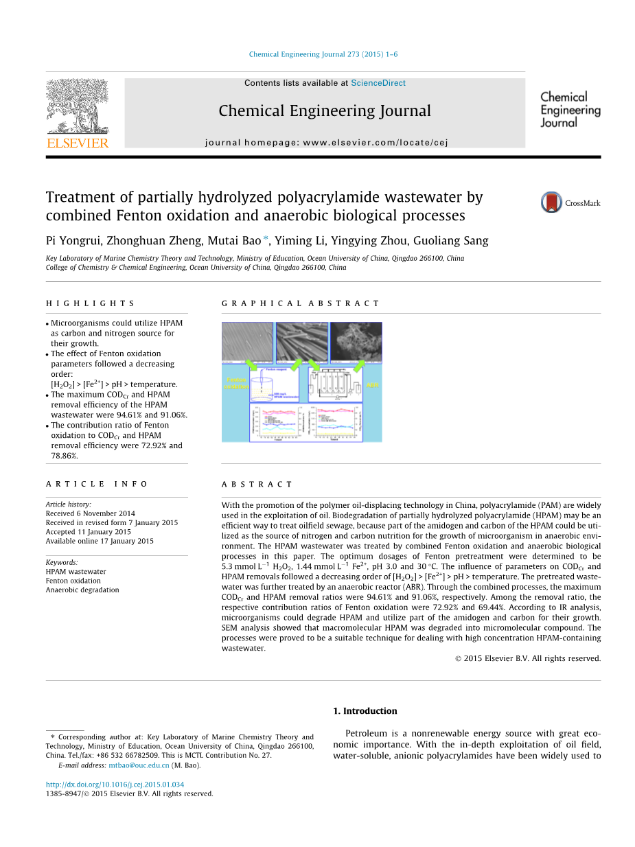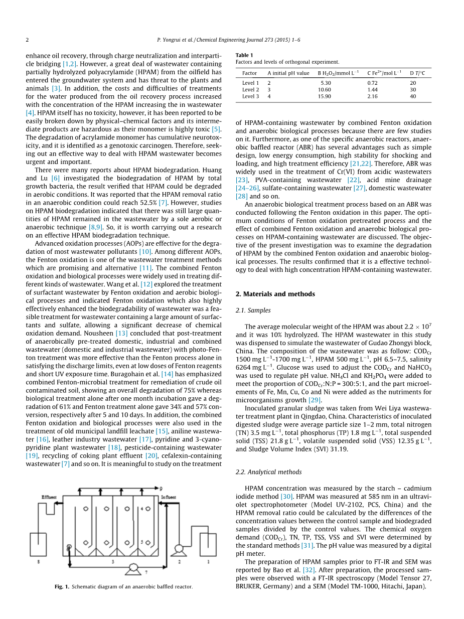 采用芬顿氧化-厌氧工艺处理部分水解聚丙烯酰胺废水外文翻译资料