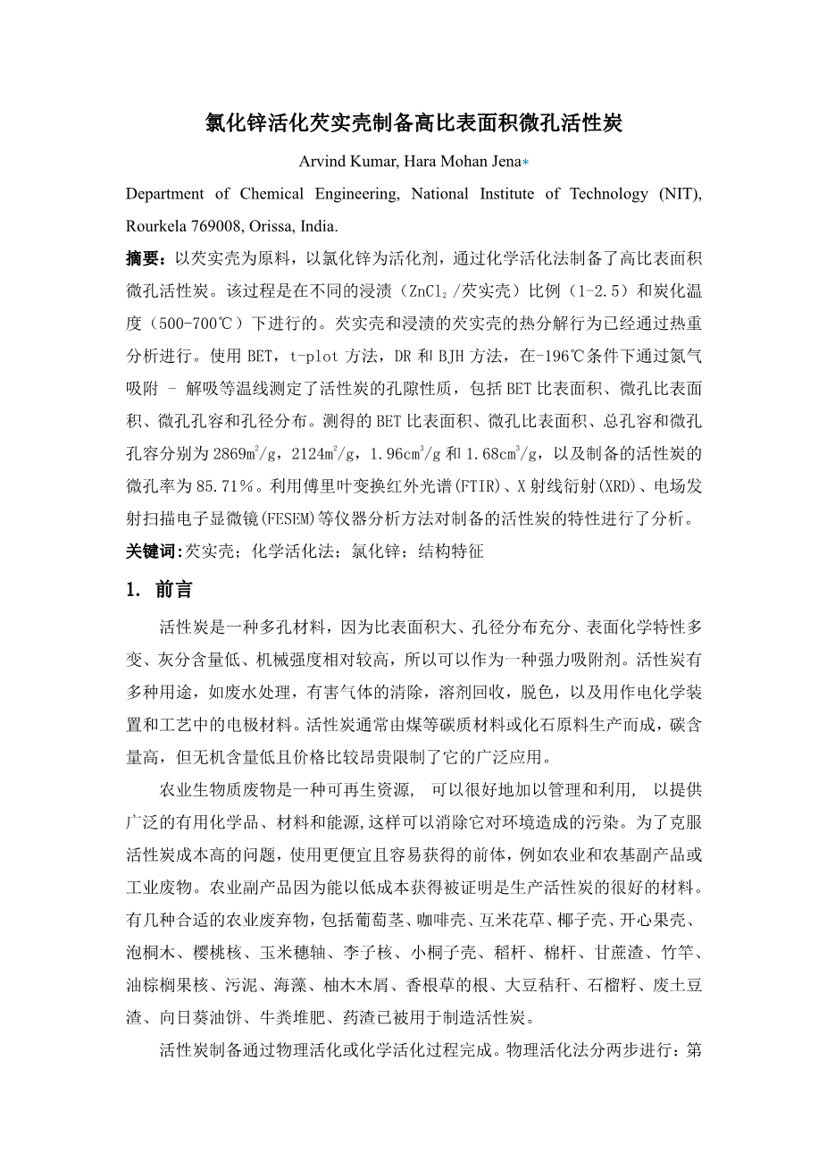 - 表面改性对活性炭吸附苯酚和2,4-二硝基苯酚的影响外文翻译资料