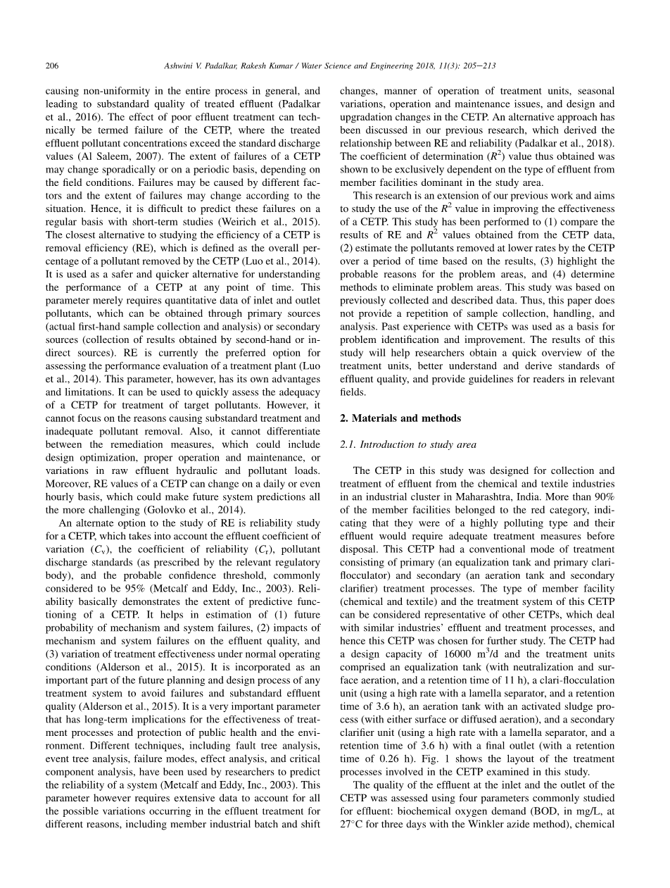 该研究是我们以前工作的延伸,旨在研究R2 值在提高CETP有效性方面的应用。本研究的目的是(1)比较从CETP数据中获得的RE和R2 值的结果,(2)根据结果估算出CETP在一段时间内以较低的速率去除的污染物,(3)突出问题区域的可能原因,(4)确定消除问题区域的方法。该研究基于先前收集和描述的数据。