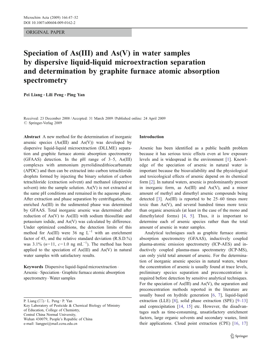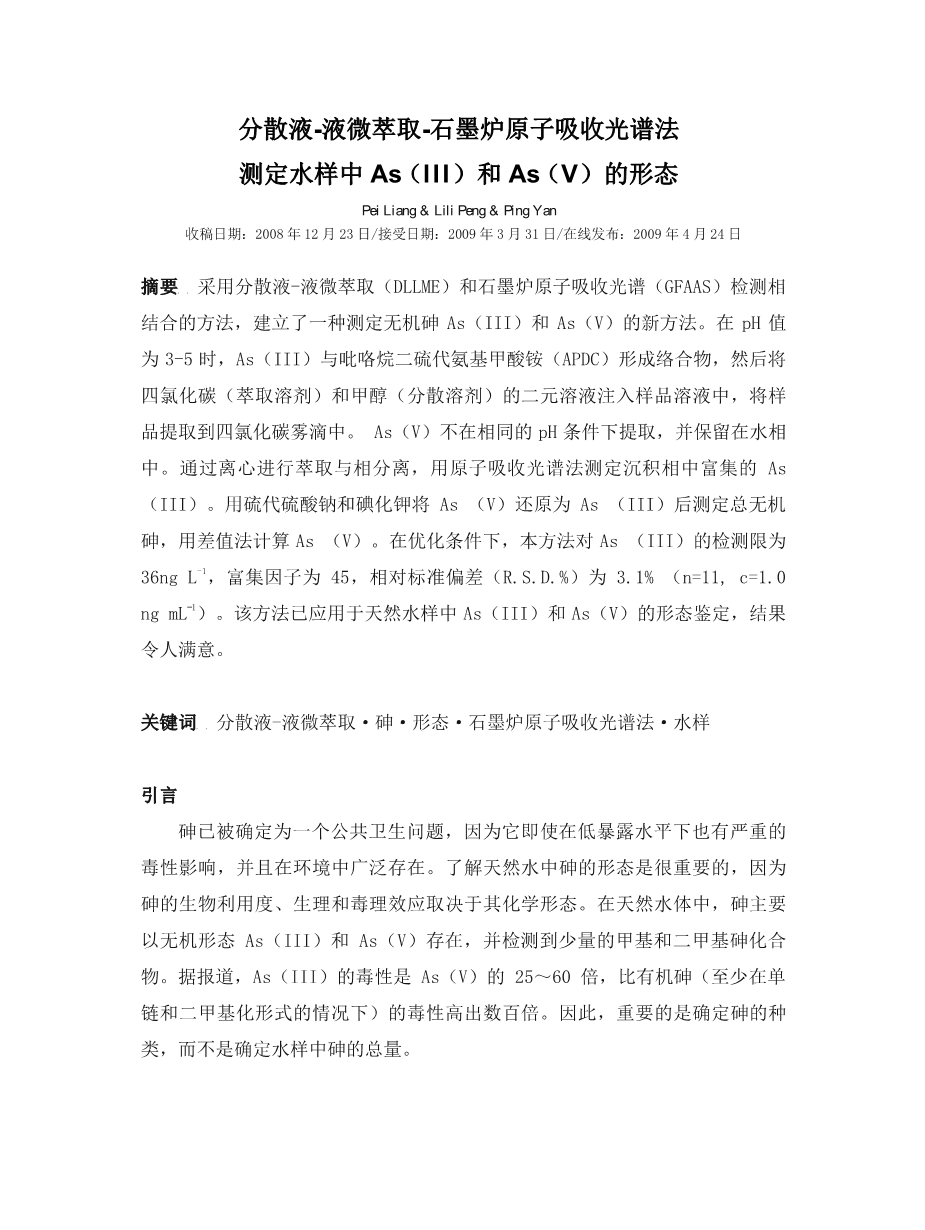 - 流动注射-在线固相萃取化学发光系统测定天然水中痕量铜外文翻译资料