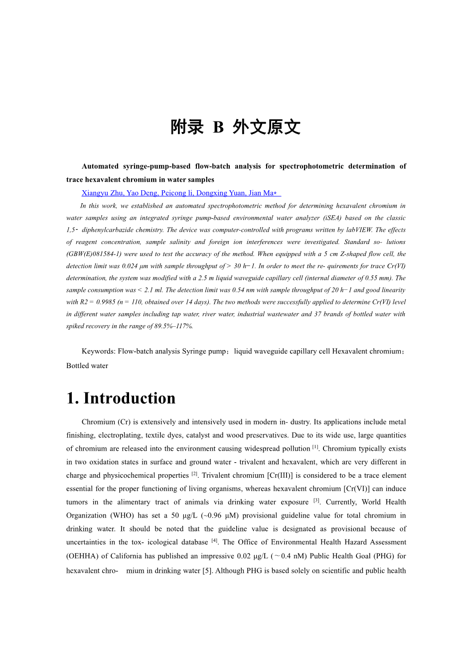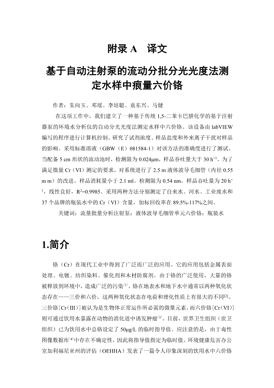 - 流动注射-在线固相萃取化学发光系统测定天然水中痕量铜外文翻译资料