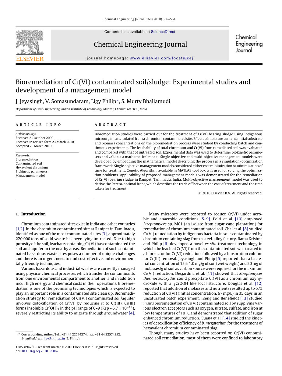 Cr(VI)污染土壤/污泥的生物修复:实验研究和管理模式的发展