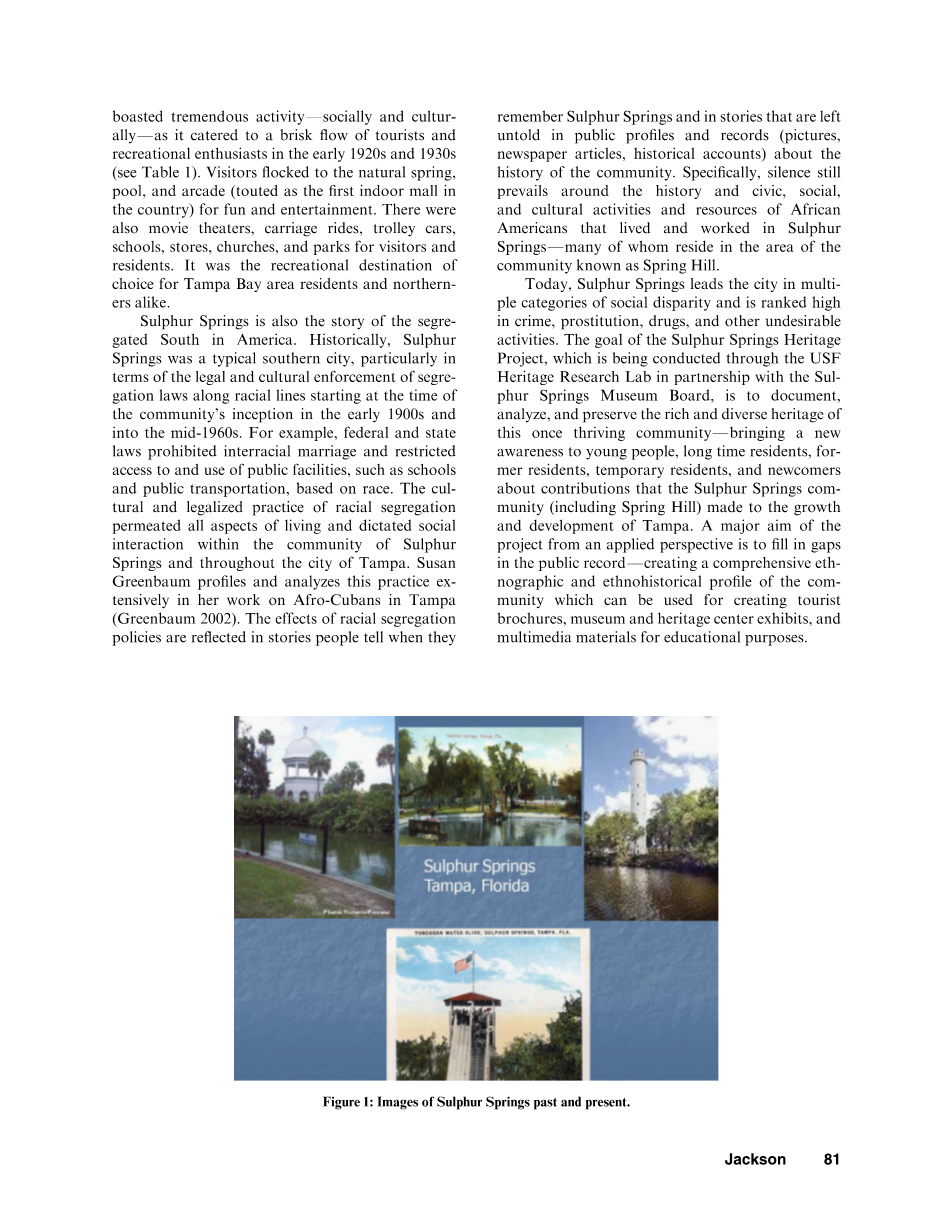 摘要:美国的种族隔离历史在塑造遗产和许多社区中发挥了关键作用。这里所说的遗产是指是那些被公开承认、记忆和保存的东西,社区是指那些被遗忘、被窃取或被降级为其他地位的事物的社区。在本文中,我将与南佛罗里达大学的学生和教师合作,讨论如何开始解决佛罗里达州坦帕市的苏尔福斯普林斯社区作为重要文化资源在遗产运营中的身份和代表性问题。这个社区面临的问题突出表明了遗产研究、保存和管理在确定现在和创造未来社区中所起的作用。从以前对佛罗里达州杰克逊维尔金斯利种植园社区进行的研究中得到的经验教训,为我们这个分析提供了依据。