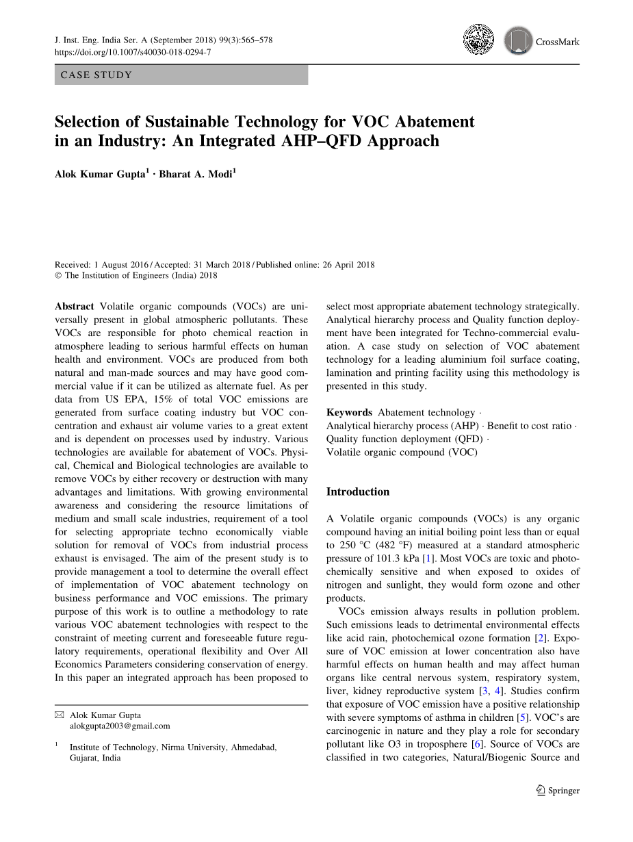 Alok Kumar Gupta1 bull; Bharat A. Modi1