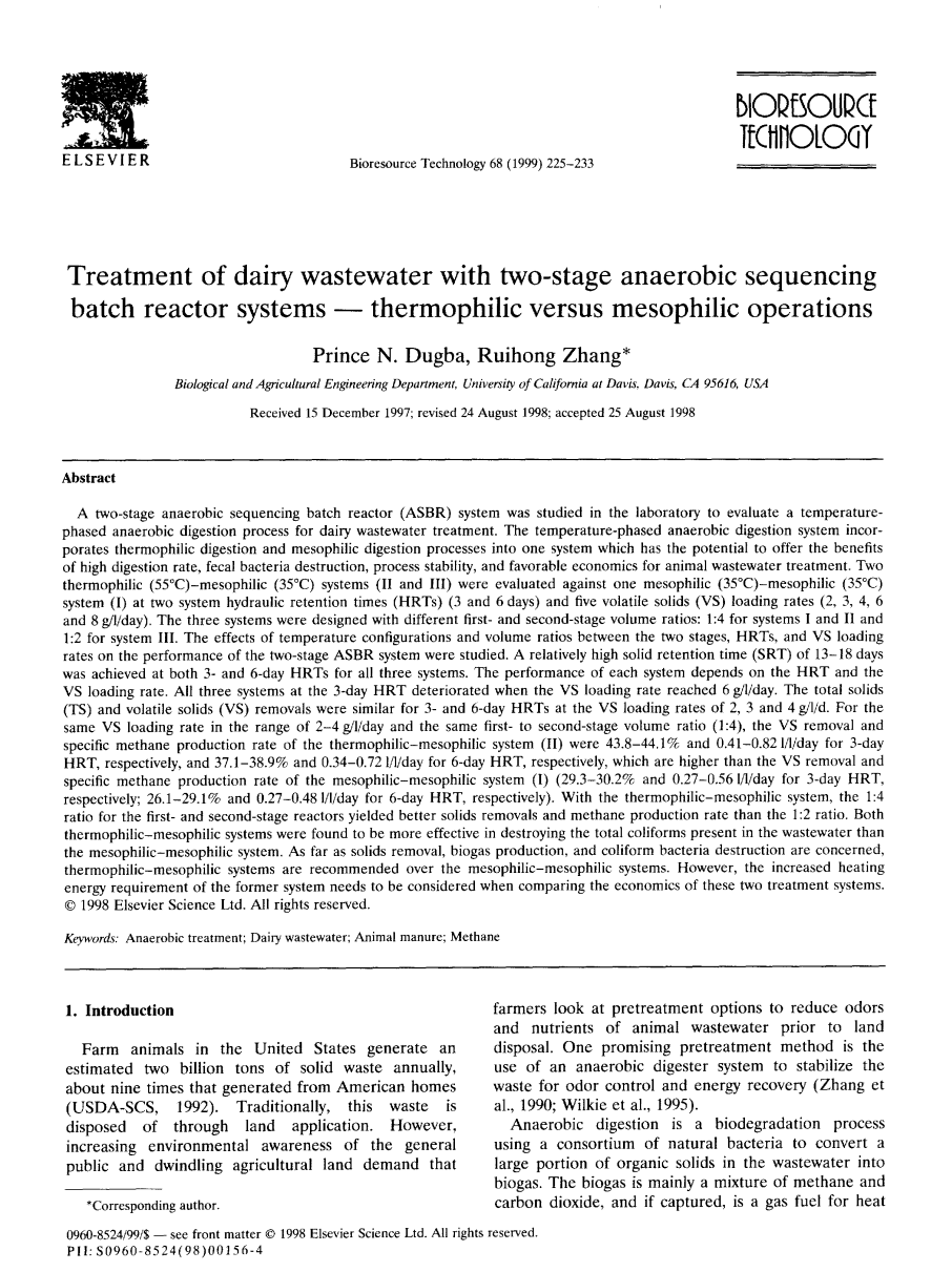 (ii) 由于细菌种群具有更多的异质性,通过适当地控制酸化作用,能提高菌群稳定性,因为该过程将确保有机物和水力不会超过负荷波动,且能在第一阶段则充当代谢缓冲液( Zoetemeyer ,1982)。对产甲烷菌有毒的物质也可以在第一阶段去除。