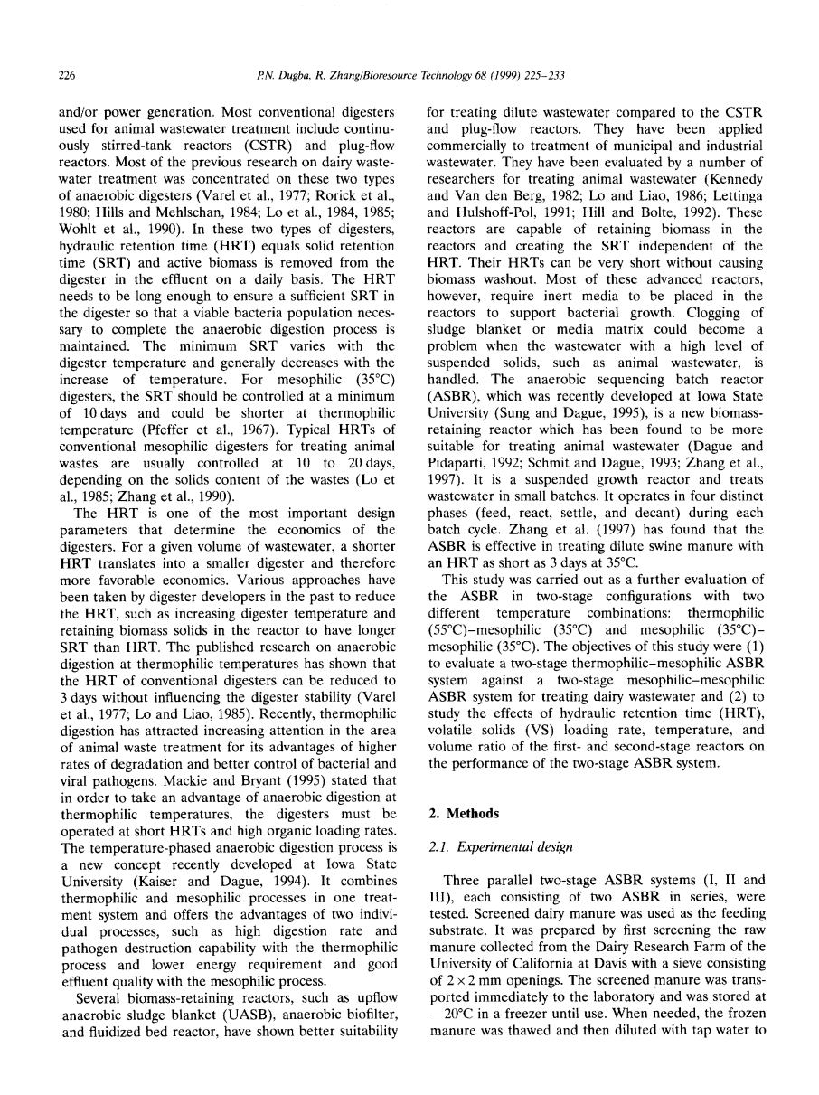 已经发表了大量关于在两相反应器中处理废物的益处的文献(Massey和Pohland,1978; Cohen等,1980;Verstraete等,1981; Ghosh 和Henry,1982; Fernandes,1986)在处理啤酒(Oliva等,1990),酵母(Enger等,1986),不溶性废物,棕榈油(Ng等,1985),乳品( Li和Sutton,1984年),汽水(Ghosh等人,1983年)和污水污泥和肥料(Ghosh等人,1975年)两相工艺有更高的处理效率和更好的工艺稳定性。自1970年代以来,相分离已被引入厌氧消化技术中。然而,关于预酸化反应器中的操作条件的优化,两相构造中的上流过滤器的操作和性能的数据很少。因此,通过运行了两相厌氧消化系统9月时间,来确定其在酸化程度,预酸化反应器中产生的主要VFA的分布,总COD去除量,总脂肪物质(TFM)去除方面的性能。