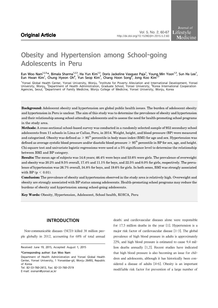 原文作者 Eun Woo Nam,Bimala Sharma,Ha Yun Kim,Doris Jackeline Vasquez Paja,Young Min Yoon, Sun Ha Lee,Eun Hwan Kim, Chung Hyeon Oh, Yun Seop Kim, Chang Hoon Song, Jong Koo Kim