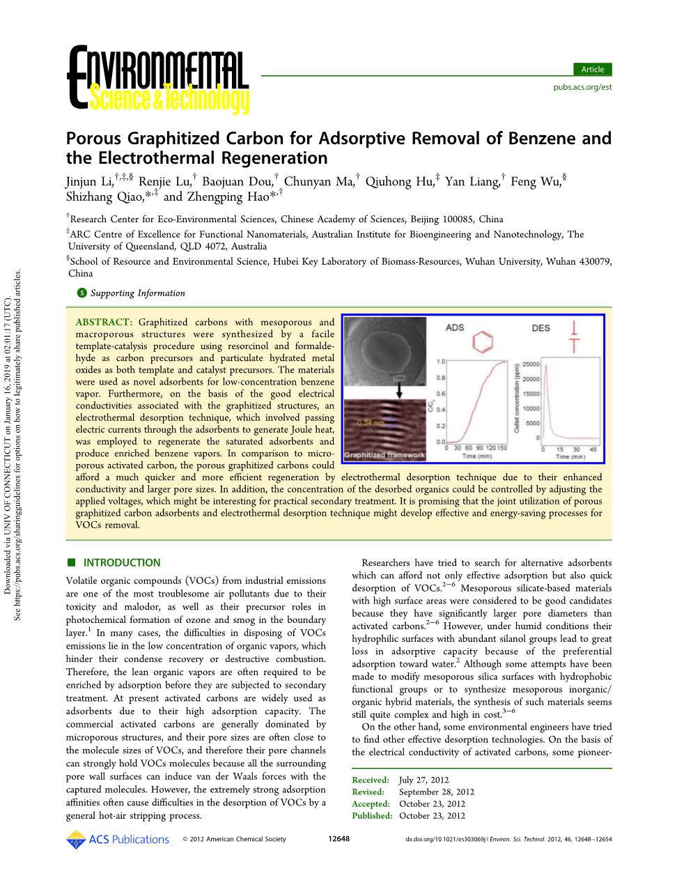 吸附去除苯和电热再生物的多孔石墨化碳外文翻译资料