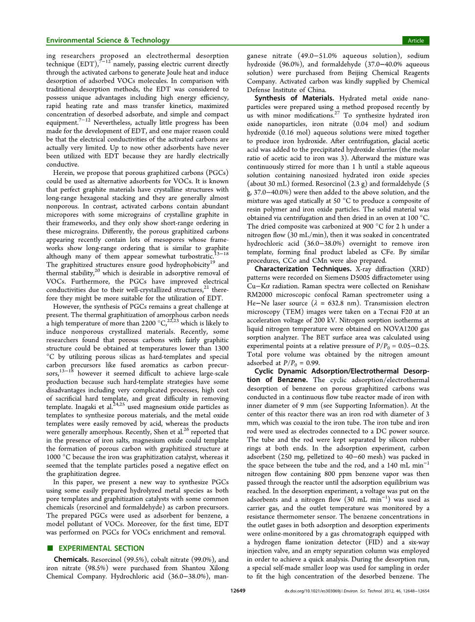 在此,我们提出多孔石墨化碳(PGCs)可以作为VOCs的替代吸附剂。众所周知,完美石墨材料具有长程六角形堆积的结晶结构,且几乎无孔。相比之下,活性炭含有丰富的微孔,骨架中含有一些结晶石墨微颗粒,这些微颗粒中只表现出短程有序。不同的是,最近出现的多孔石墨化碳含有大量的介孔,它们的骨架结构显示出与石墨相似的长时间有序排列,尽管其中许多具有一定的涡轮强度。石墨化结构确保了良好的疏水性和热稳定性,这是理想的吸附去除挥发性有机化合物。此外,PGCs还改进了电气性能由于它们具有良好的结晶结构,所以它们可能更适合于EDT的应用。