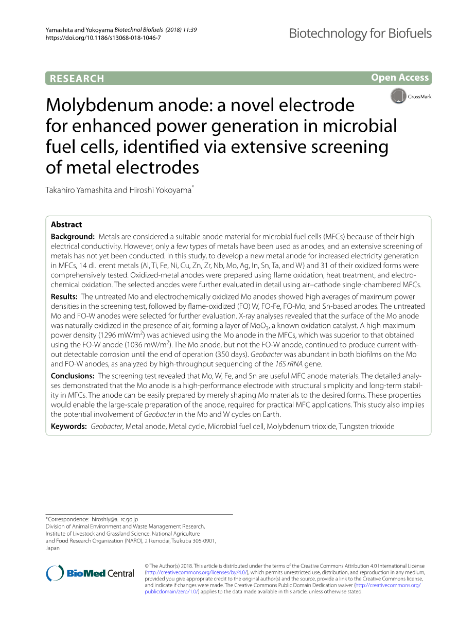 背景:金属具有高导电性,被认为是适用于微生物燃料电池(MFCs)的阳极材料。然而,只有少数类型的金属被用作阳极材料,并且还没有对金属进行分析。在这项研究中,为了开发一种新型金属阳极以增加MFC的发电量,对14种不同的金属(Al,Ti,Fe,Ni,Cu,Zn,Zr,Nb,Mo,Ag,In,Sn,Ta和W) 并对其中31种氧化形式进行了全面测试。制备阳极金属氧化材料使用表面氧化,热处理和电化学氧化来制备氧化金属阳极。这个研究将使用空气单室阴极MFC进一步详细评估选定的阳极。
