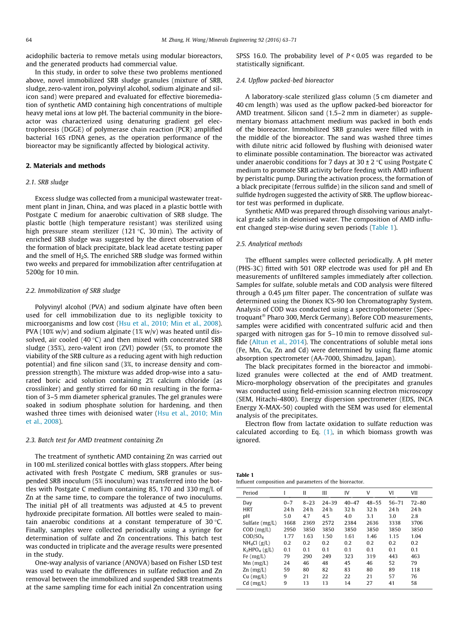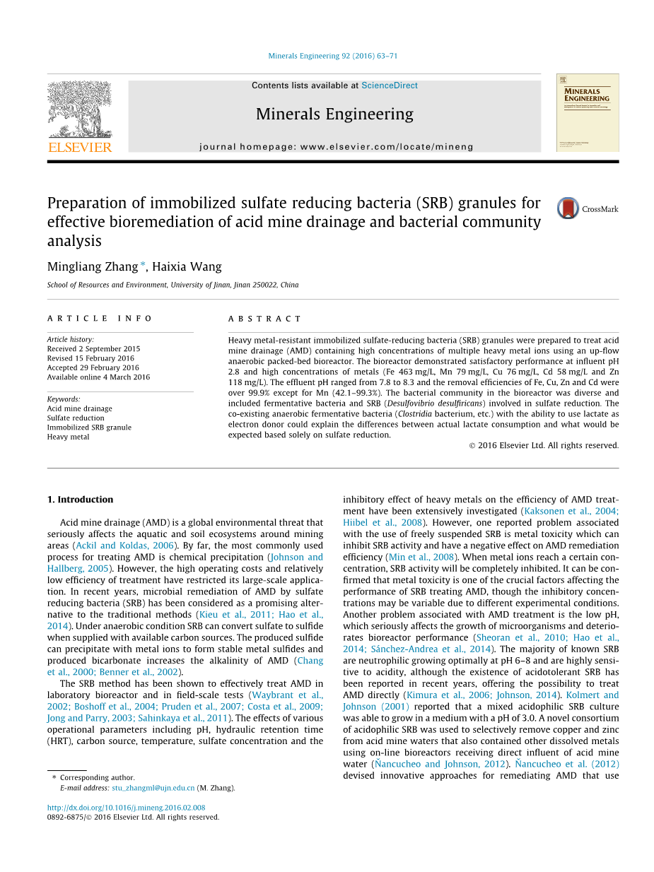 固定化硫酸盐还原菌(SRB)颗粒的制备,用于酸性矿山废水的有效生物修复和细菌群落分析外文翻译资料