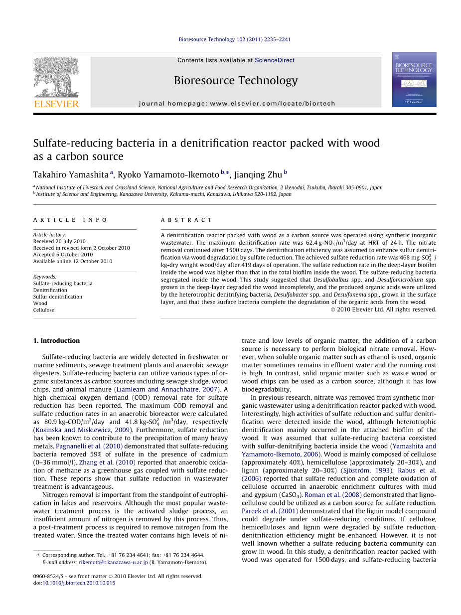 - 活性炭对水溶液中氨的吸附外文翻译资料